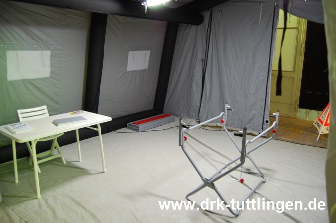 Um uns mit dem Aufbau des AB MANV vertraut zu machen, hatten wir vor ihn einmal komplett aufzubauen. Da das Wetter dazu zu unsicher war, entschlossen wir uns, in eine Leerstehende Halle zu gehen. Dort bauten wir den BHP komplett auf, richteten die Zelte komplett ein und diskutierten über Veränderungen. Diese Übung dient dazu, im Einsatzfall den BHP noch schneller aufzubauen, da jeder Helfer weiß was er machen muss.